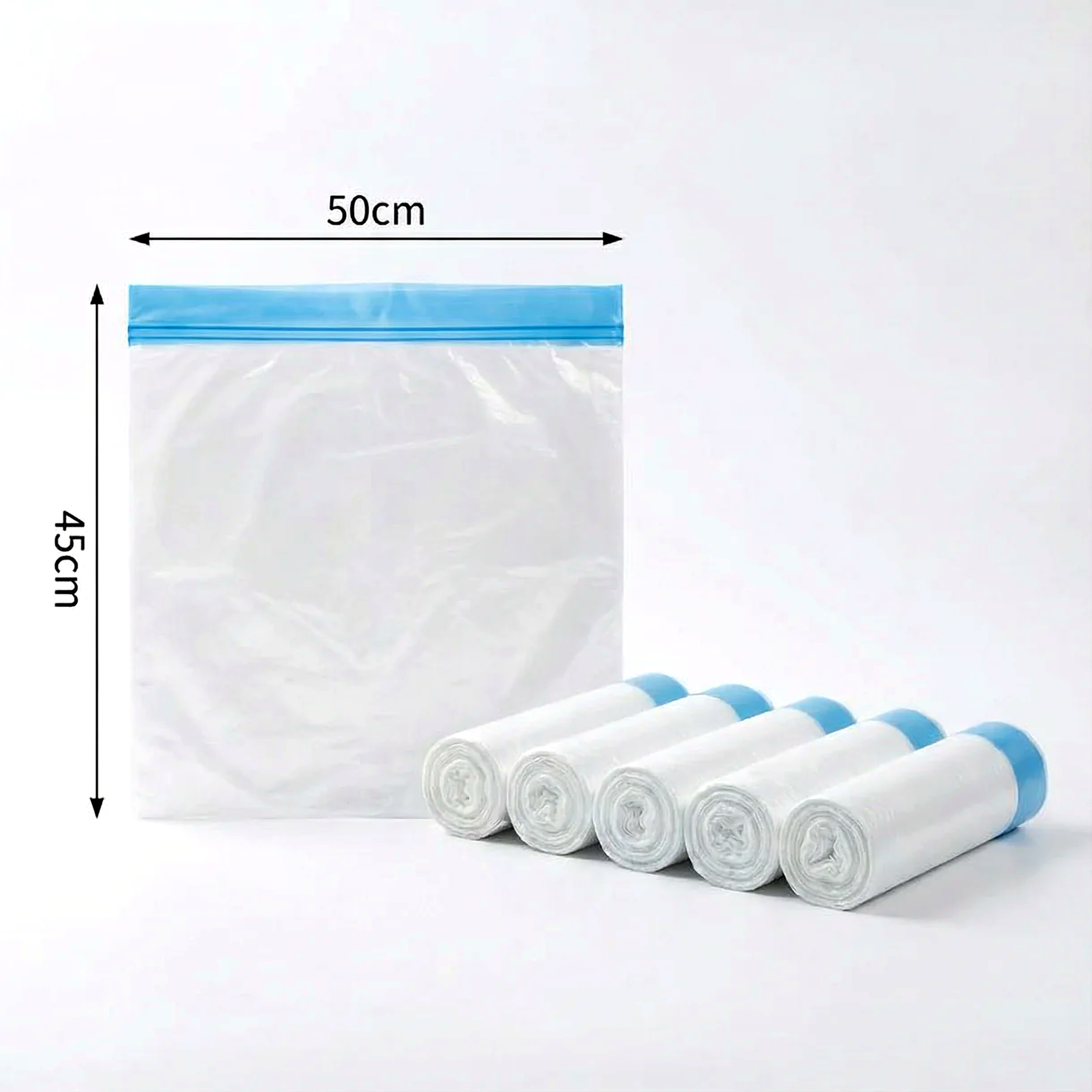 O pack inclui 5 rolos com 18 sacos cada, garantindo até 6 meses de utilização contínua.