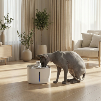 A PetMaison Fountain mantém a água em movimento, promovendo bem-estar e frescura — com uma presença discreta e elegante em qualquer espaço.